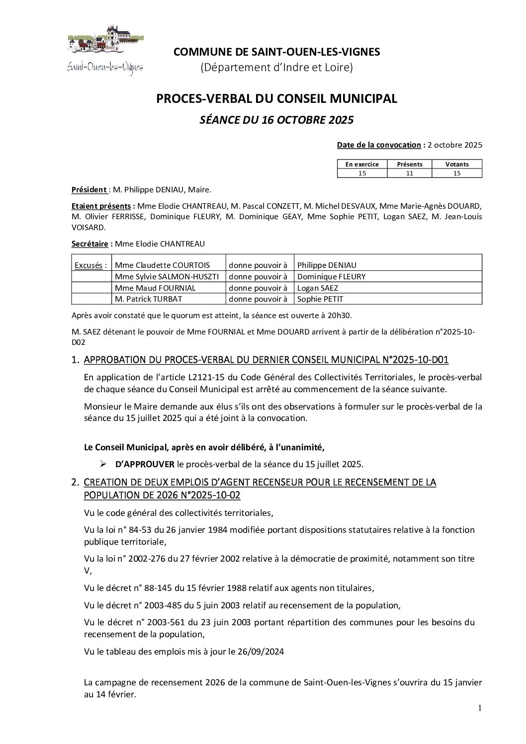 conseil municipal du 16 octobre 2025